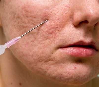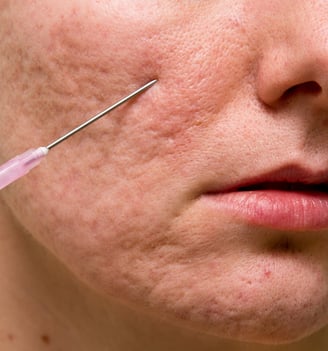 Scar subcision is a minimally invasive surgical procedure which involves inserting a needle under the skin to break up fibrous bands that tether the scar to deeper tissues.