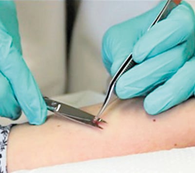 A small sample of skin is removed for testing. It is commonly used to diagnose skin conditions such as eczema, infections, and skin cancer.